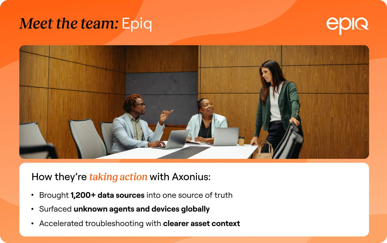 At Epiq, hybrid infrastructure and disconnected systems made asset visibility hard to trust. When it takes too long to answer “What do we own?” or “Is that endpoint secured?”, scope becomes unclear and teams lose time chasing answers across silos.