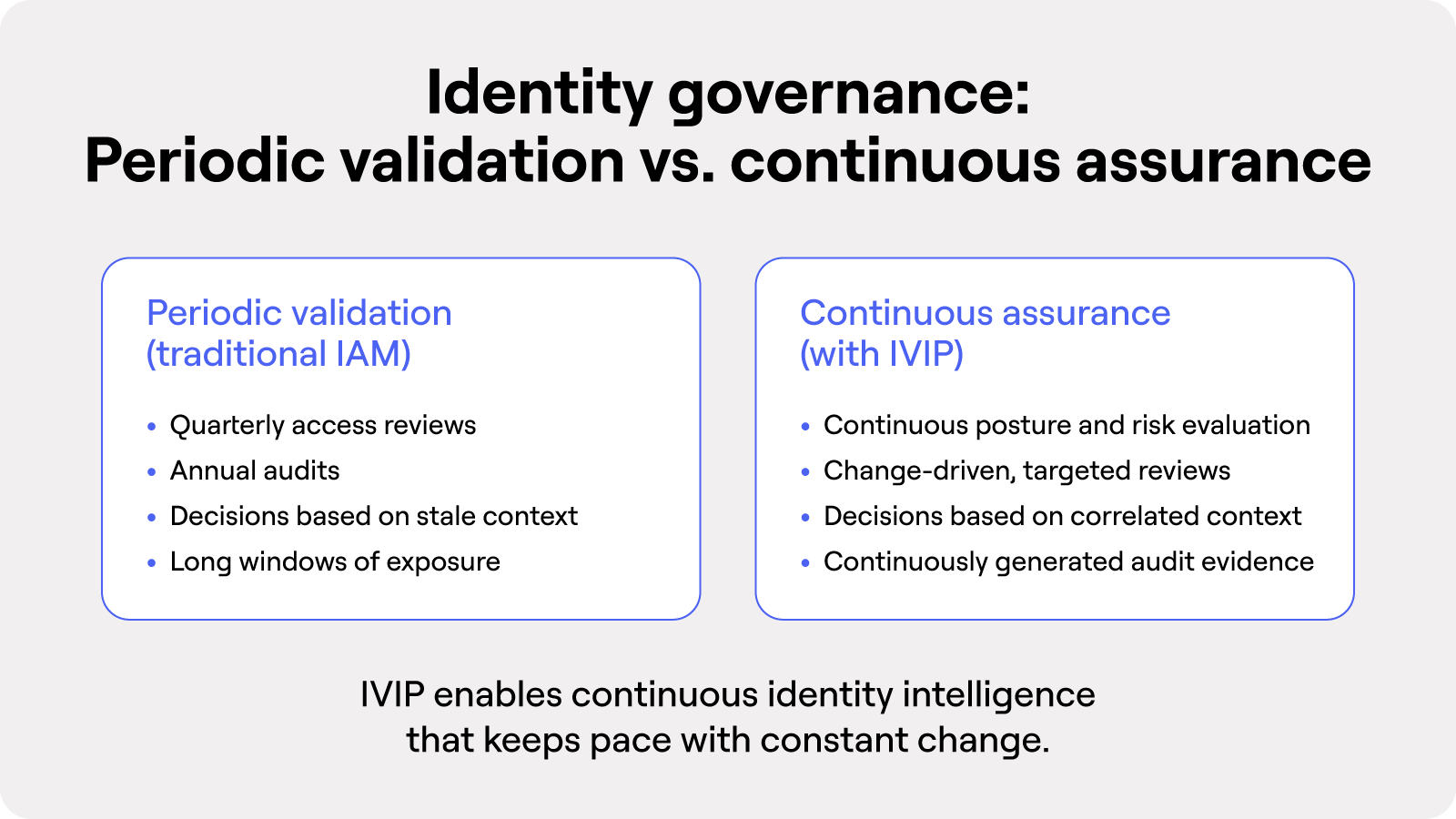 IVIP is gaining traction because identity changes faster than periodic governance can keep up. Automation, AI, and third-party integrations have made identity the control plane for digital business, with access and entitlements constantly shifting across cloud, SaaS, and DevOps environments.