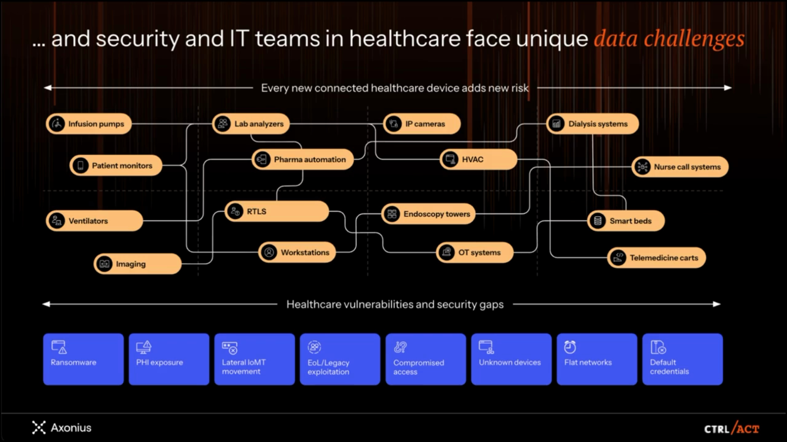 Healthcare is one of the most complex and mission-critical industries, where outages impact not just operations but patient safety. Hospitals face ransomware every few minutes, legacy medical devices with unique protocols, and the challenge of managing risk across siloed tools. In this session, we’ll introduce Axonius for Healthcare, our newest platform expansion and first acquisition. You’ll see how we combine IT asset intelligence with deep clinical device expertise to deliver complete visibility, enriched risk context, and orchestrated action across every connected asset. Learn why Axonius chose healthcare, how it fits into the Asset Cloud, and what’s next on the roadmap for proactive security and compliance.